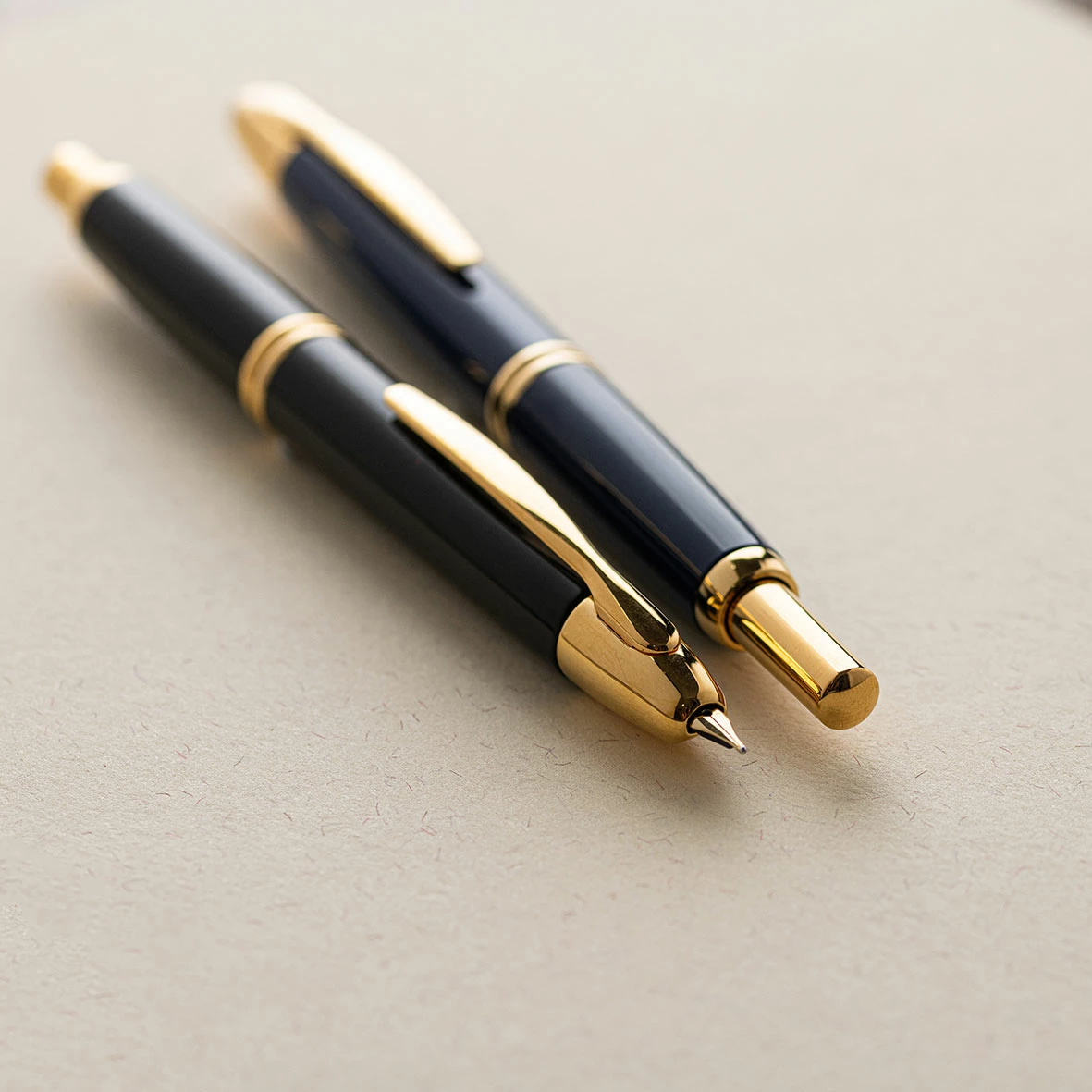 The Capless fountain penΒ is refillable for continued use with a Pilot cartridge orΒ CON-40 converter. It is packaged in aΒ sturdy presentation boxΒ with a CON-40Β converter inside the pen andΒ a black PilotΒ IC-50Β cartridge.Β