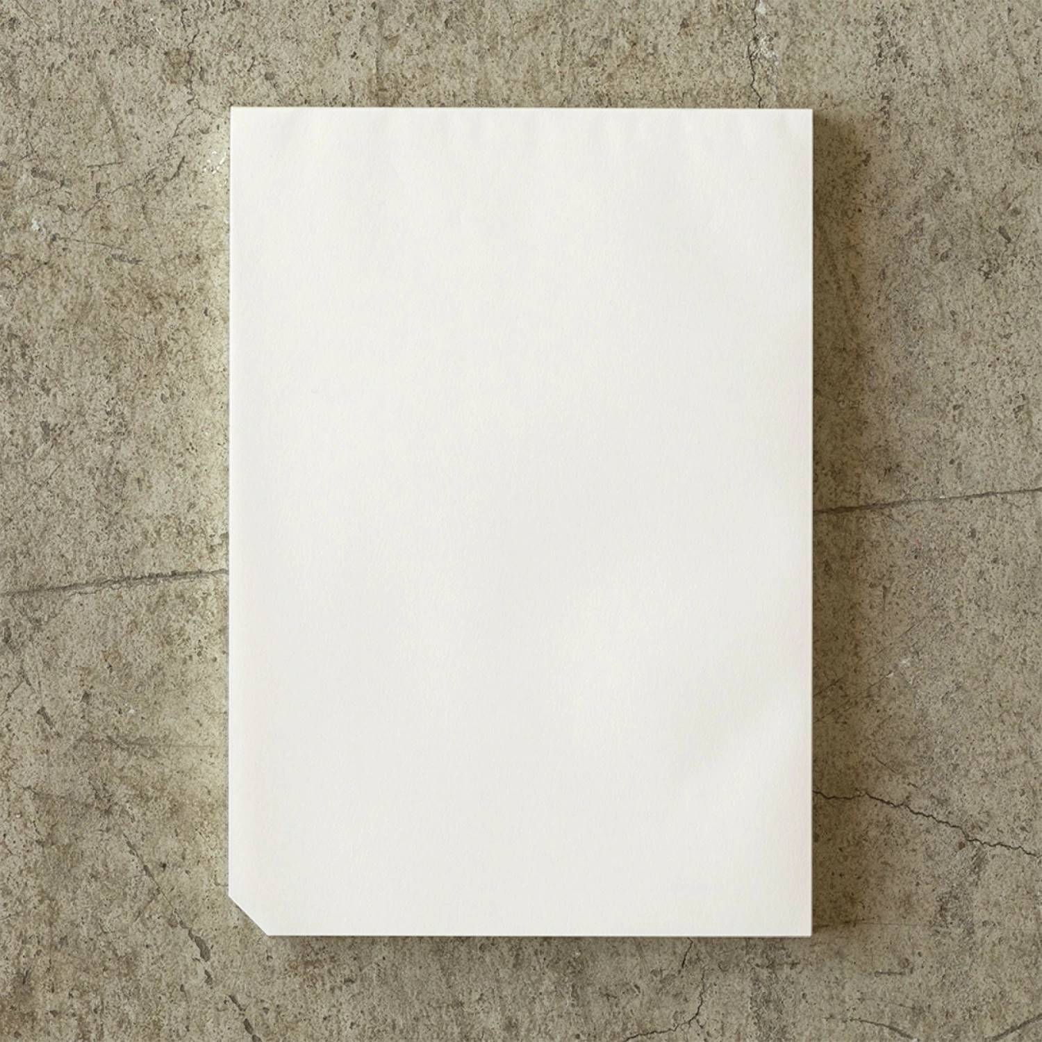 Designed with comfort and functionality in mind, the Midori Notepad is unlike other notepads. The notepad is glued along both the vertical and horizontal edges to prevent the pages from creating so-called dog ears, while also enabling freedom of orientation when writing β either vertically or horizontally. One corner has a small diagonal cut, making it easy to turn the pages.
