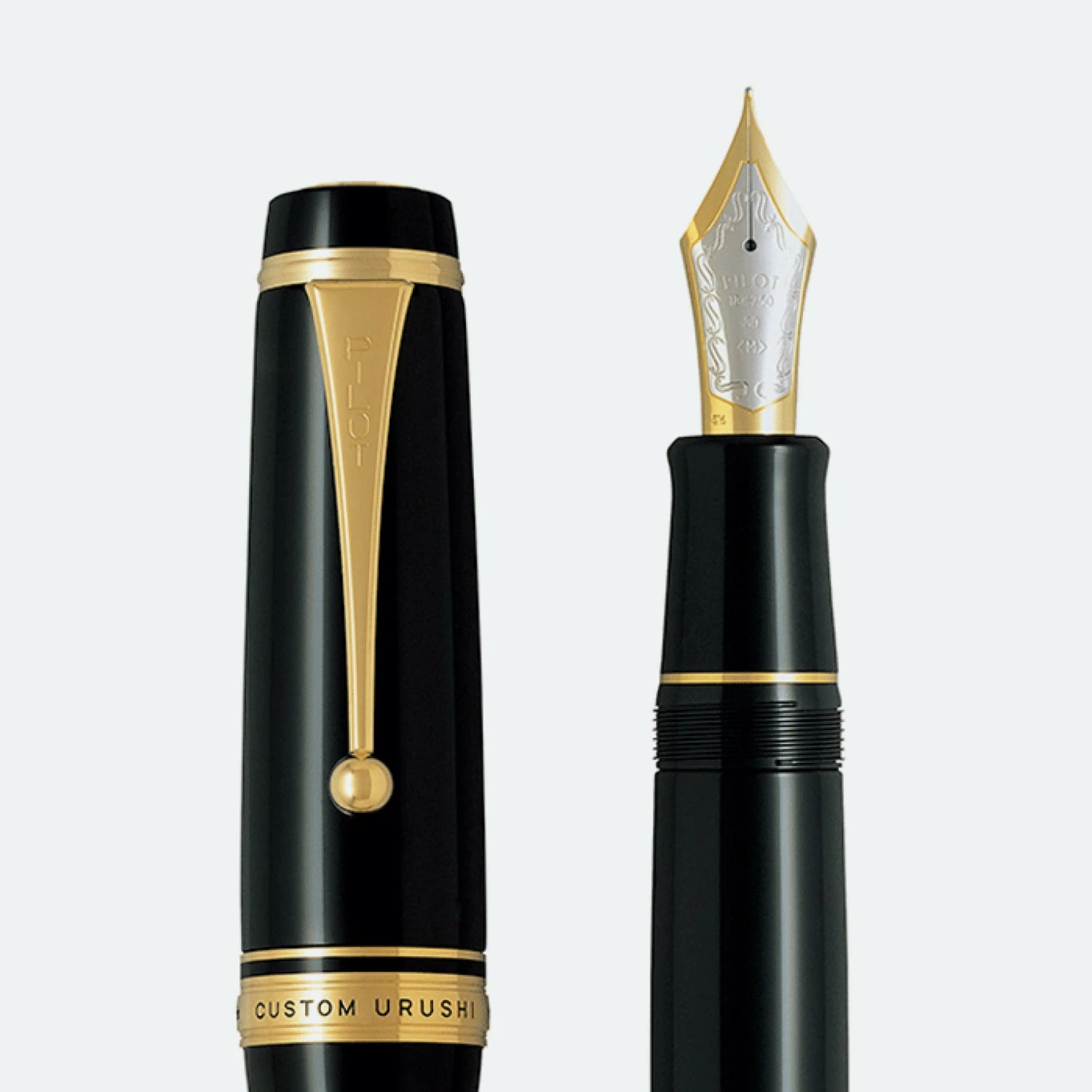 Regal and refined with an oversized nib and barrel, the Pilot Custom Urushi fountain pen boastsΒ a two-toned nib size 30 made of 18K gold and rhodium. The impressive, nib size is designed for maximum impact and is significantly more expansive than the size 15 nib of the Custom 823.