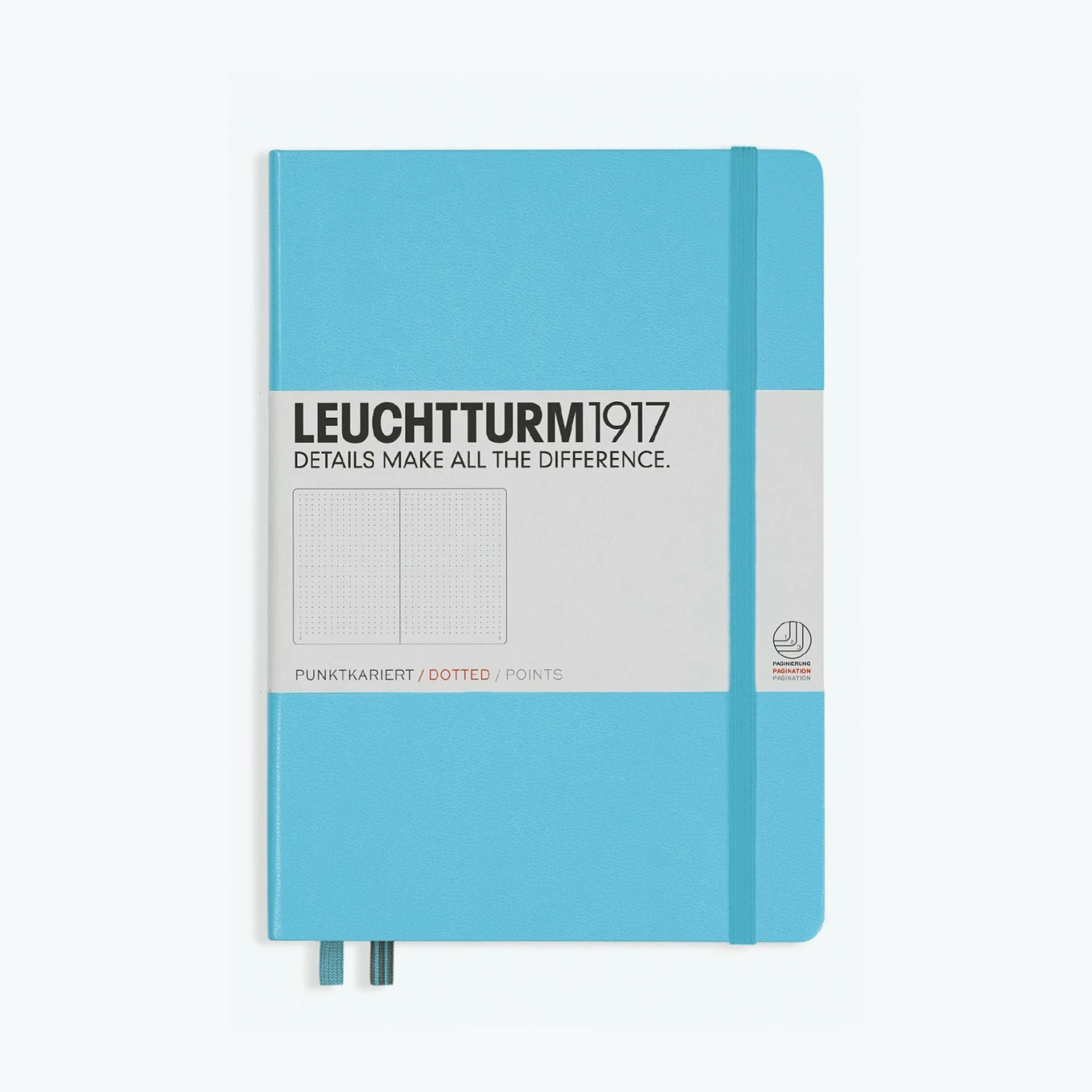 TheΒ ice blueΒ Leuchtturm1917Β A5Β is a simple yet sophisticated notebook, making it an ideal companion for all walks of life. Leuchtturm1917 notebooks are designed very carefully down to the last detail. The pages are numbered and each page has space at the top for the date, while a blank table of content makes it easy to organise notes. There are several perforated pages and a gusseted pocket at the back of the notebook, as well as a set of self-adhesive stickers for labelling and archiving.