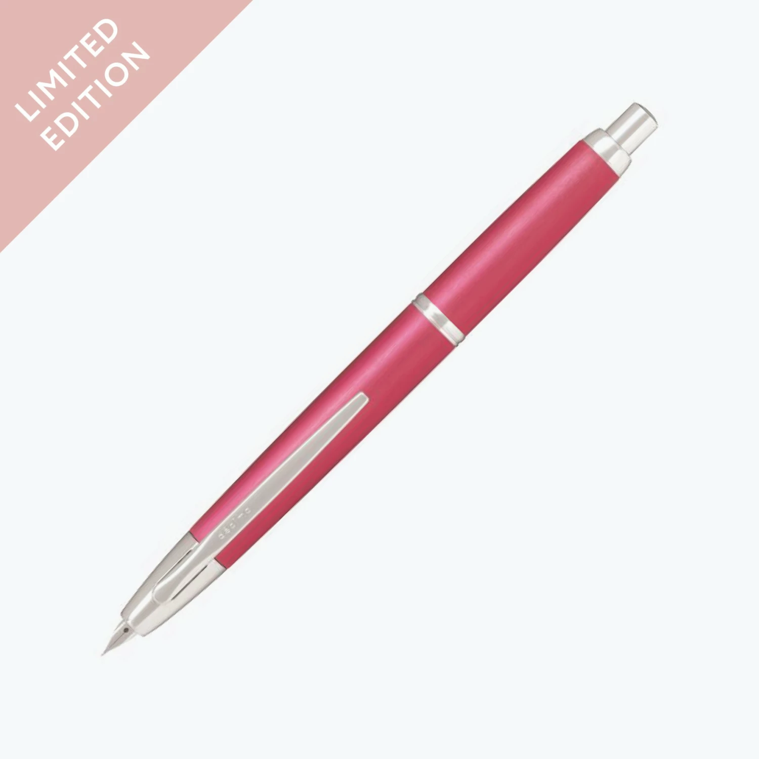 Coral PinkΒ Decimo 20 Colors Volume 1 by Pilot.Β New Alumite Technology (anodized aluminium), provides increased resistance to corrosion and wear, with better colour/paint adhesion.Β Alumite Technology, coupled with hairline techniques creates a new tactile texture to the barrel.Β It comes in a gift box, with a Pilot Converter-40 inside the pen and a black ink cartridge.