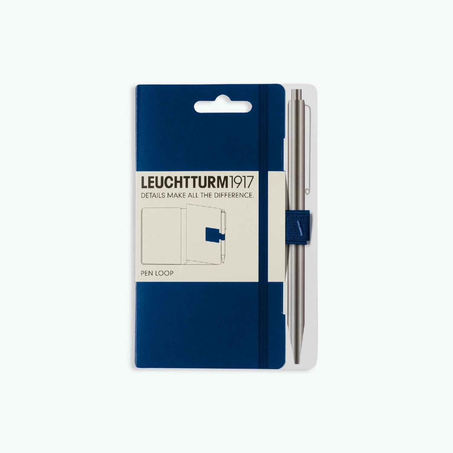 The navyΒ Leuchtturm1917Β self-adhesiveβ loopβ sticks on theβ insideβ backβ cover of any notebook, making it easy to carry your favourite writing instrument with the notebook at all times. Theβ penβ loopβ is made from a sturdy elastic so isβ suitableβ forβ thin or medium pens or pencils.β