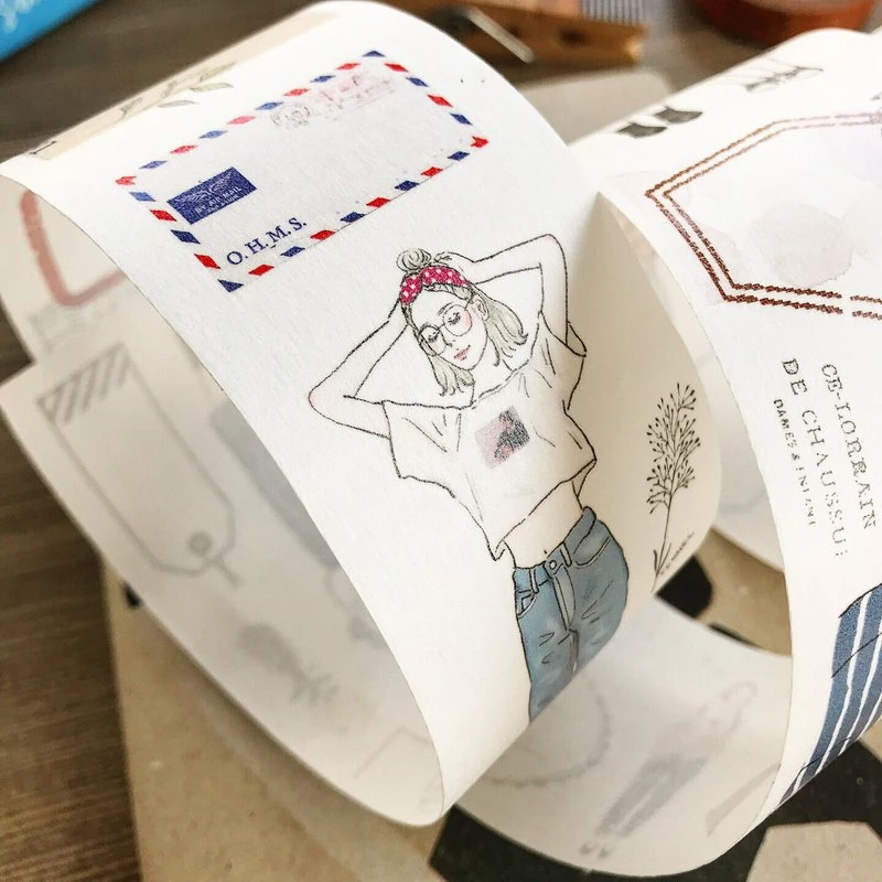 Designed by Pion, theΒ Stamp washi tape stickers are perfect forΒ journalling, scrapbooking, photo albums, invitations and letters or paired with rubber stamps, stickers and other embellishments.Β The stickers areΒ on white,Β release paper tapeΒ so each design can be cut out and used individually.Β