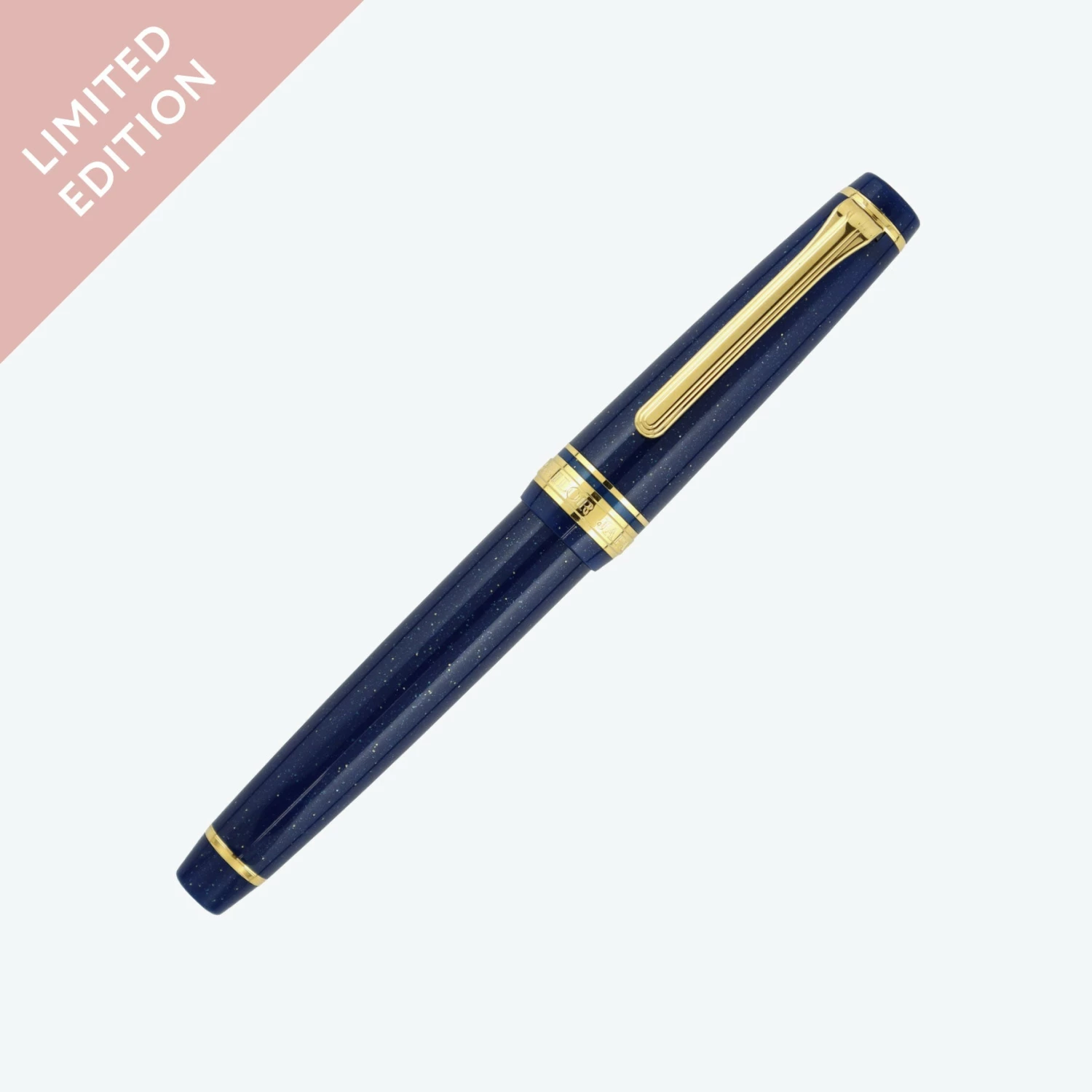 The Sailor Pro Gear Slim fountain pen has a tapered, cigar-shape profile with flattened ends, with each pen featuring reflective particles that are suspended in colourful hues of PMMA resin and matched with gold-plated trims. Made exclusively in Hiroshima, Japan, this pen also features one of Sailor’s exceptional 14K gold nibs, which is only available in a medium-fine size.Β