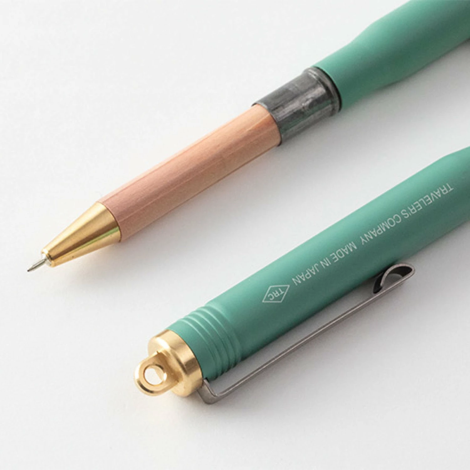 Factory Green limited edition brass ballpoint pen by Traveler’s Company.