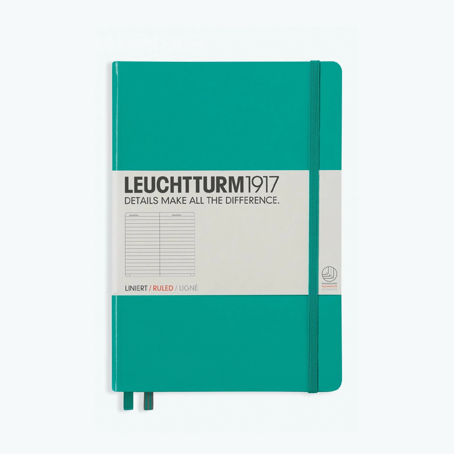 TheΒ emeraldΒ Leuchtturm1917Β A5Β is a simple yet sophisticated notebook, making it an ideal companion for all walks of life. Leuchtturm1917 notebooks are designed very carefully down to the last detail. The pages are numbered and each page has space at the top for the date, while a blank table of content makes it easy to organise notes. There are several perforated pages and a gusseted pocket at the back of the notebook, as well as a set of self-adhesive stickers for labelling and archiving.
