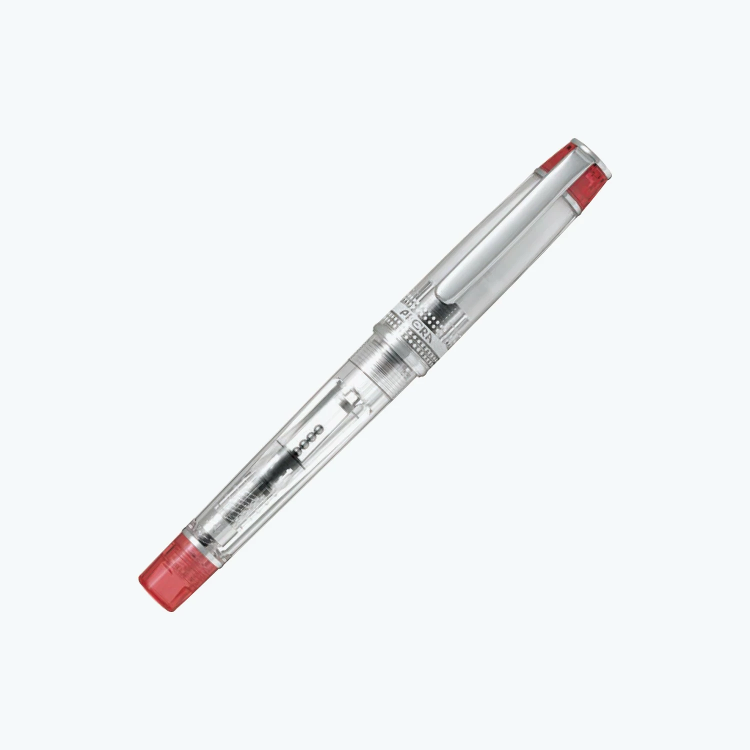 TheΒ PilotΒ Prera TransparentΒ Red fountain pen is the perfect mix of classic and modern design.Β Made fromΒ a quality resin, the Prera weighs only 14.2g, makingΒ itΒ a greatΒ everyday or beginner fountain pen. It features a chrome trim and stainless steel nib for a smooth writing experience.Β