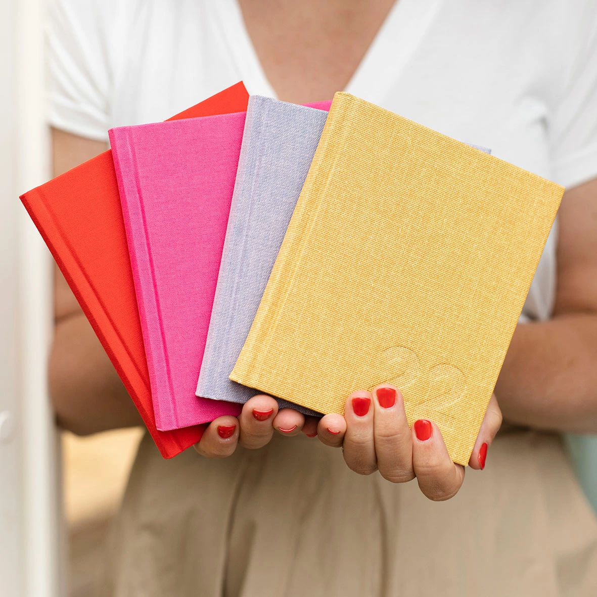 Get organised for 2022 with the gold, cloth-bound Bookbinders Design diary. The regular sized, hard cover diary features a week per double page, as well as a monthly overview. The number 22 is blind debossed on the bottom right hand corner, while a black ribbon makes it easy to bookmark pages.