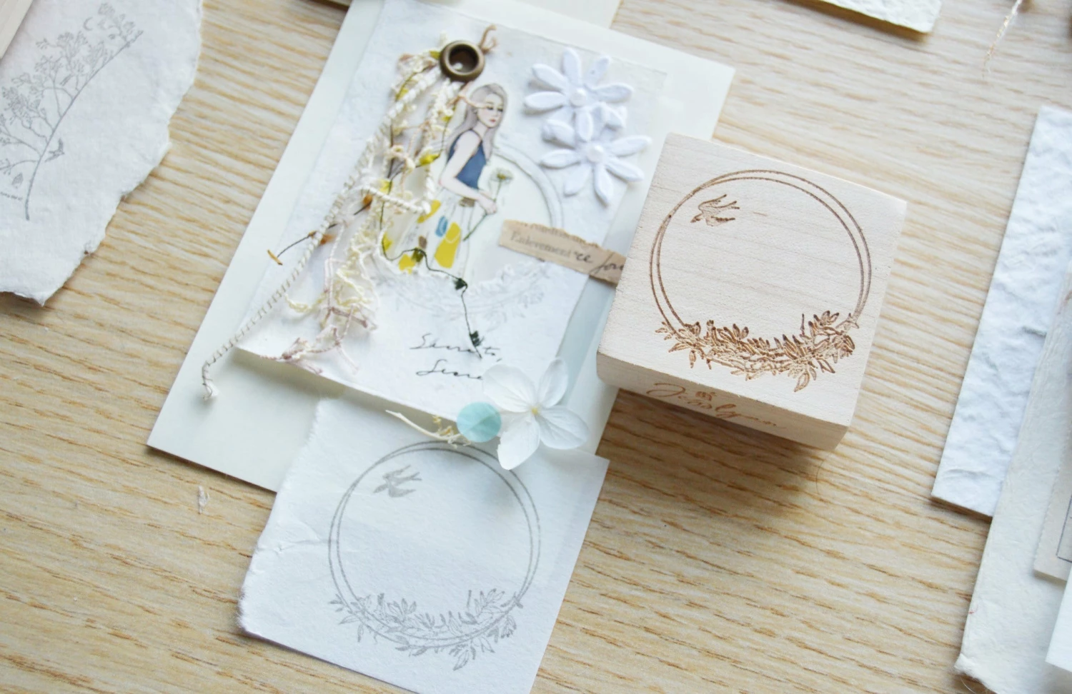 Birds fly in the distance framed by floral elements bringing hope to a new day.