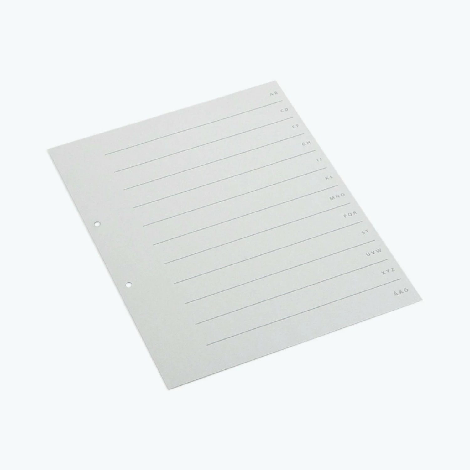Index tabs are perfect for neatly labelling documents and folders to make the information easily accessible.Β This set features 12 light grey tabs, that are lined withΒ letters of the alphabet down the right hand side.Β