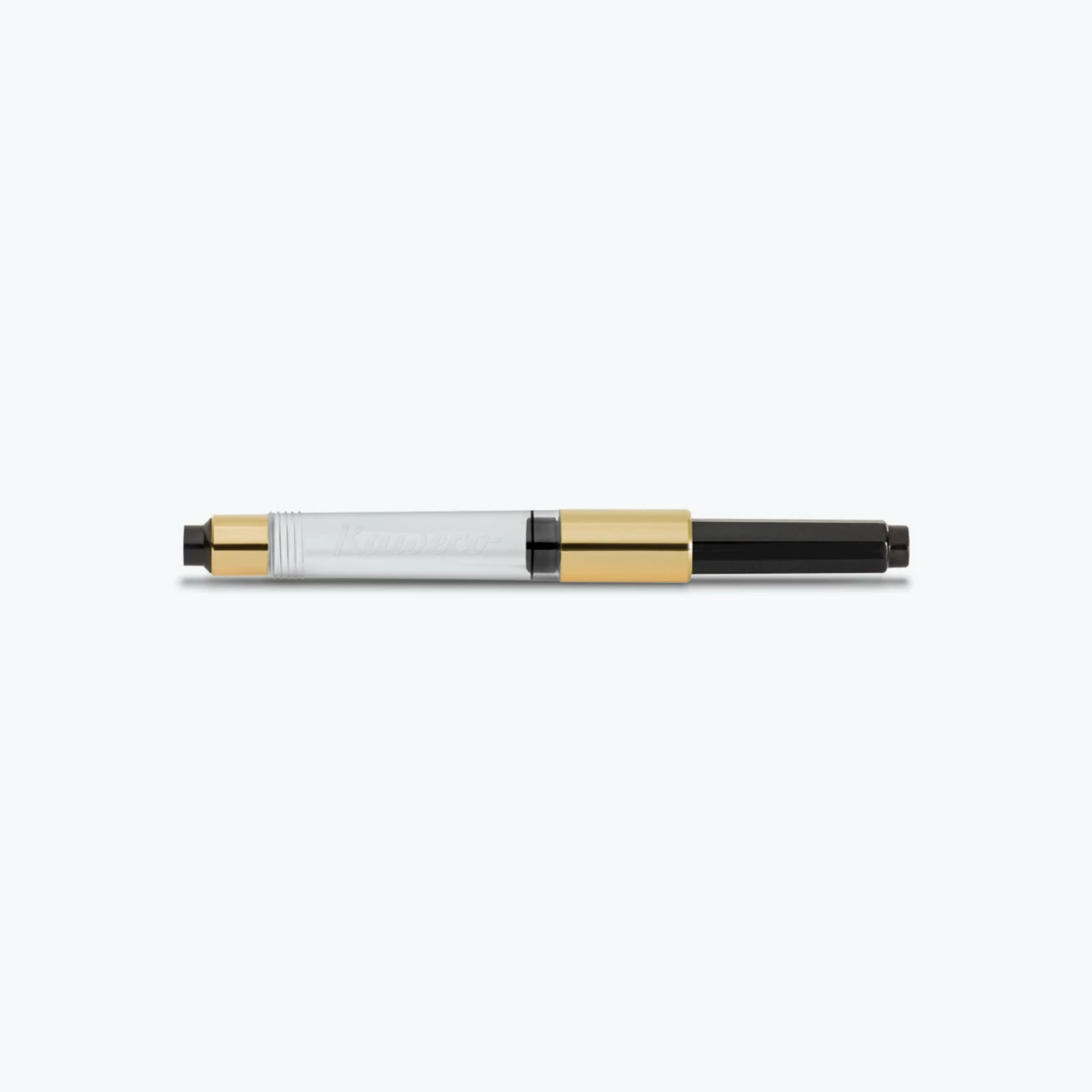 The black/goldΒ KawecoΒ piston converter is used to fill a fountain pen with bottled ink.Β It is made from plastic, has a capacity of 0.7mL and is an international fit so is compatible with any brand/pen that uses this standard including the KawecoΒ Perkeo,Β Student,Β SpecialΒ andΒ Supra.Β