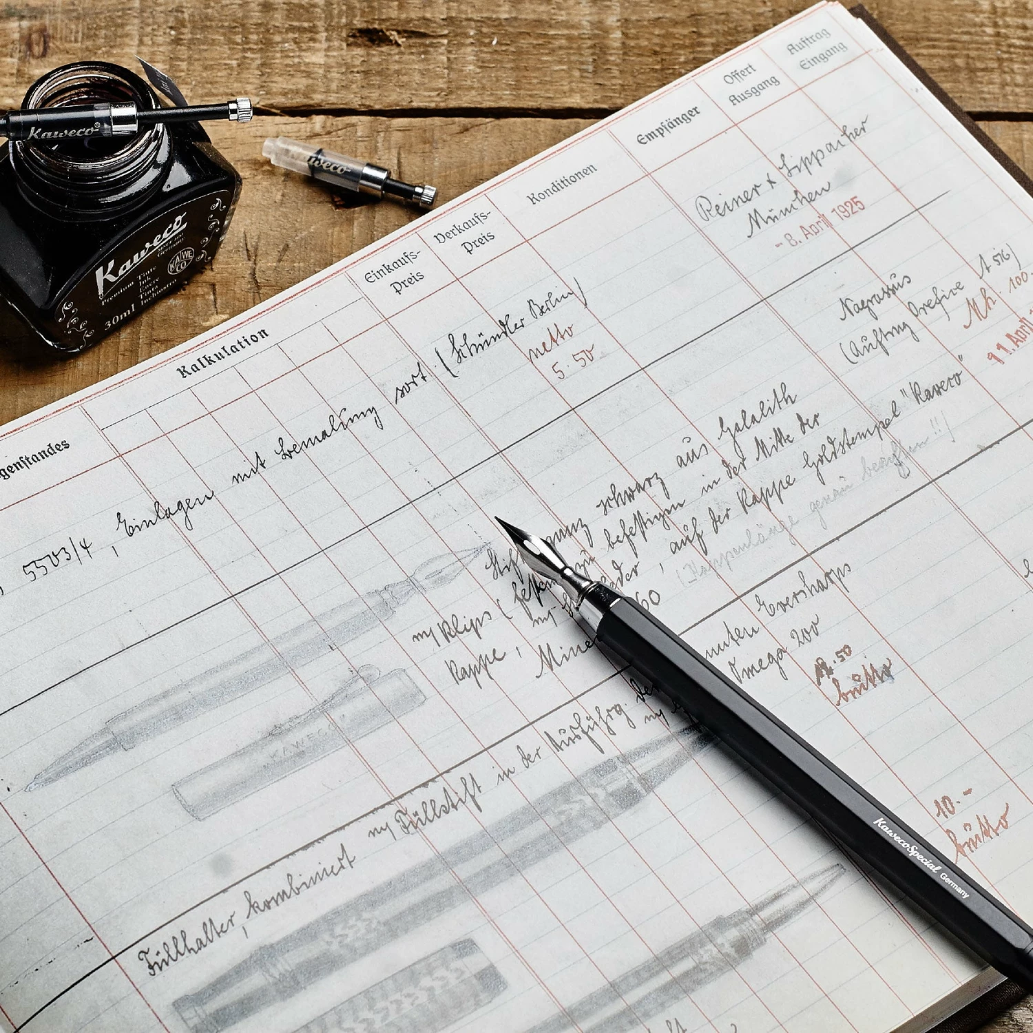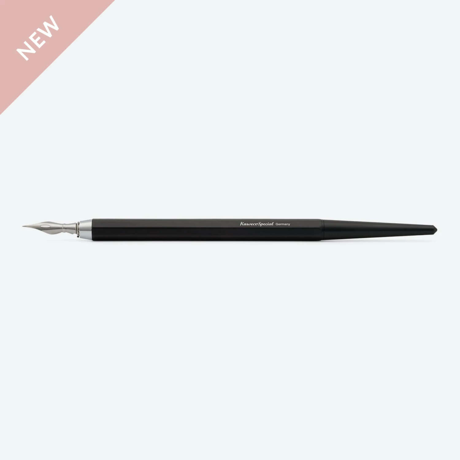 The Kaweco Special calligraphy penΒ perfectly balances high quality with great value, as well as a timeless but distinctive style. Unlike most nib holders, which are made of wood, the Special is made of matte black anodized aluminum, giving it a sleek look and solid feel without being too heavy.