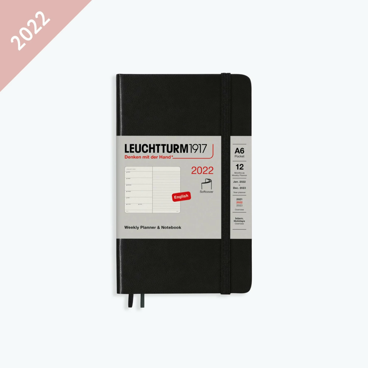 The A6 black Leuchtturm1917 weekly notebook diary is a simple yet functional companion for 2022. Every page features the calendar week on the left and a ruled notebook page on the right.