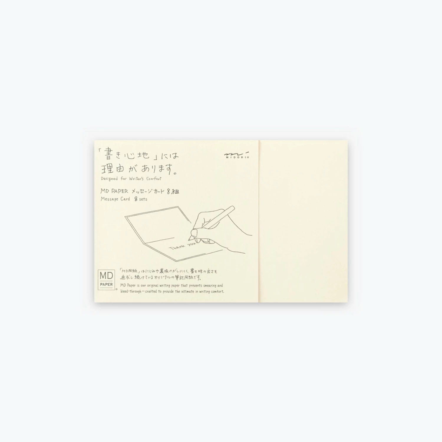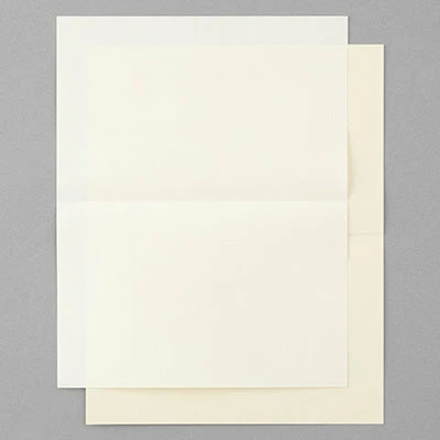 The Midori card set features 8 cards and 8 writing sheets of MD Paper,Β which is smooth and resistant to feathering and show through, making it ideal for all writing instruments including fountain pens.