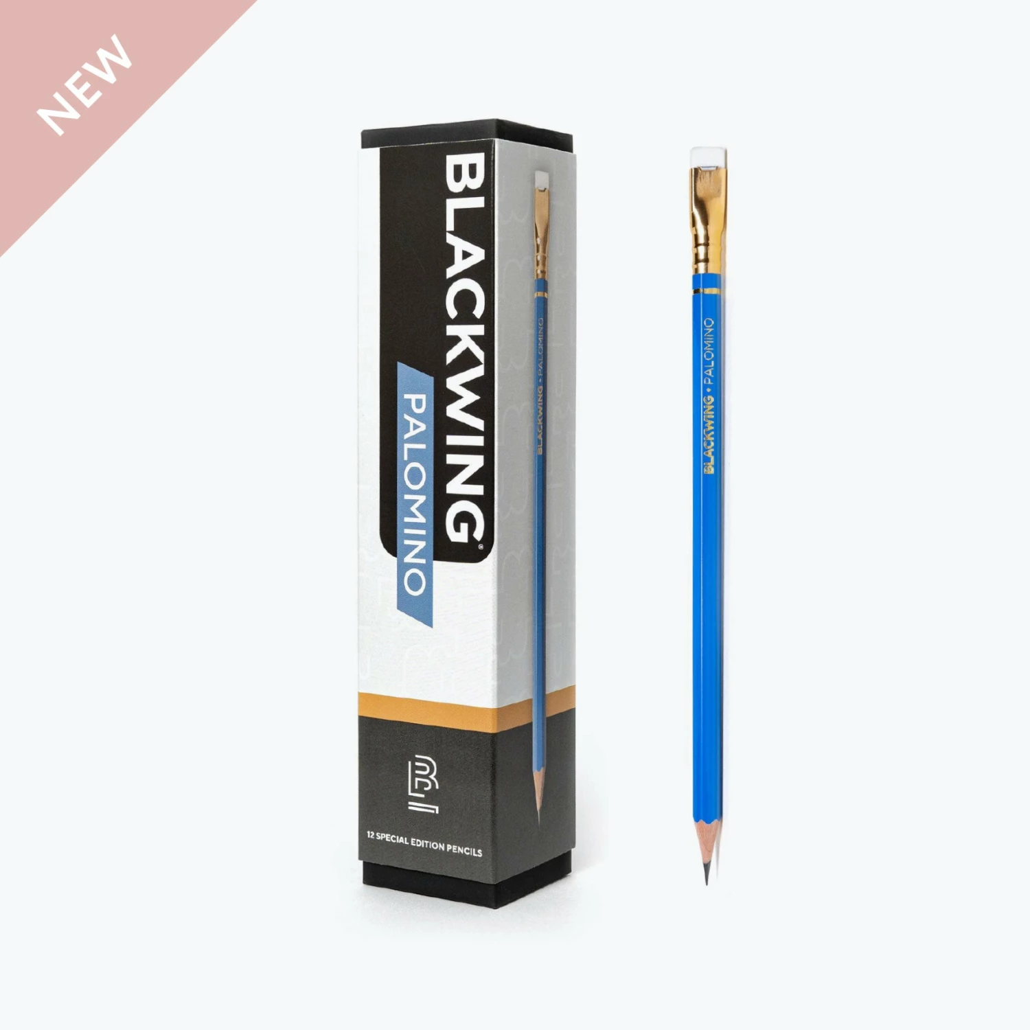 The Blackwing PalominoΒ Blue is the second entryΒ of theΒ Blackwing Eras series. Each box set includes 12 pencils that feature extra-firm graphite, along with a ‘Palomino Blue’ barrel, signature gold stripe, gold Blackwing Palomino imprint, gold ferrule, and white eraser. Also available in Orange.