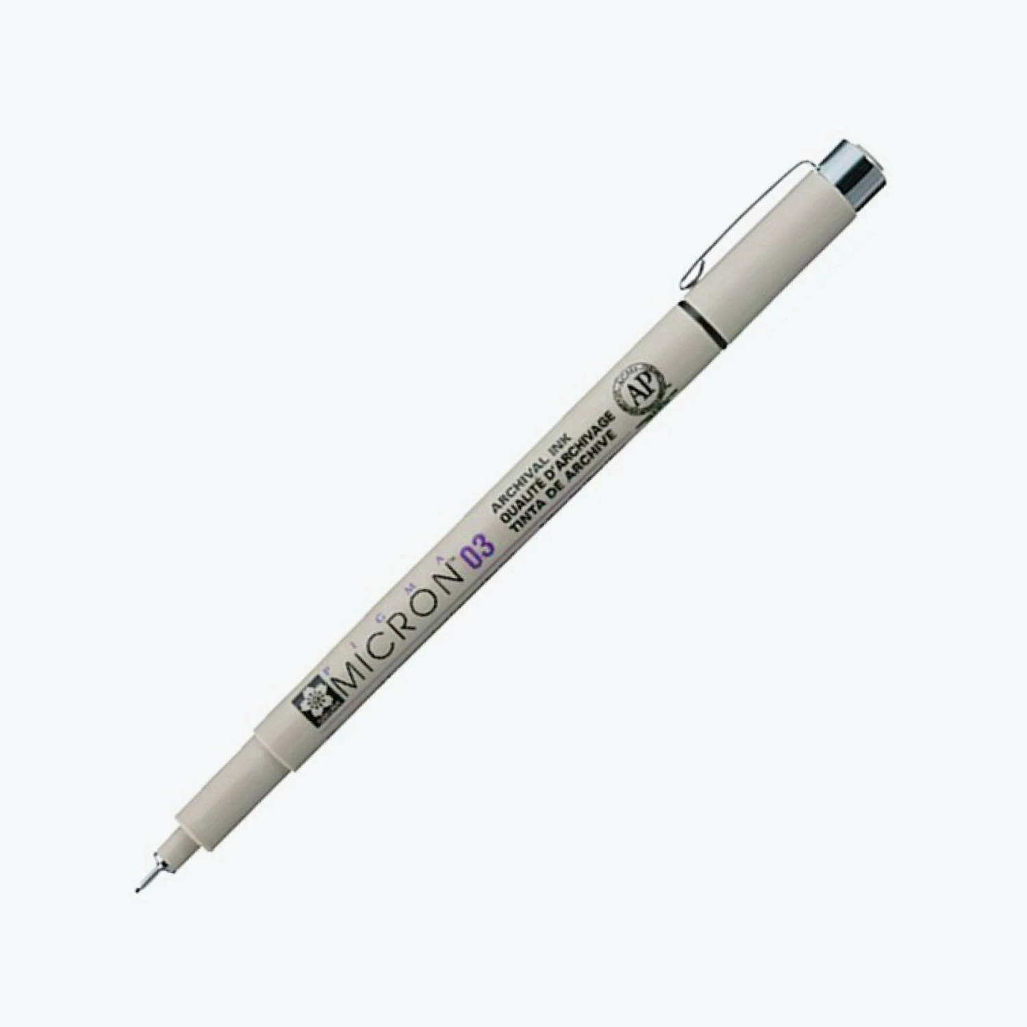 The SakuraΒ Pigma Micron Fineliner is a favourite among artists, writers and illustrators. The needle-shaped nib ensures precision and stability in line width, while the Pigma ink, invented by Sakura over 25 years ago, continues to be the most reliable permanent ink available.