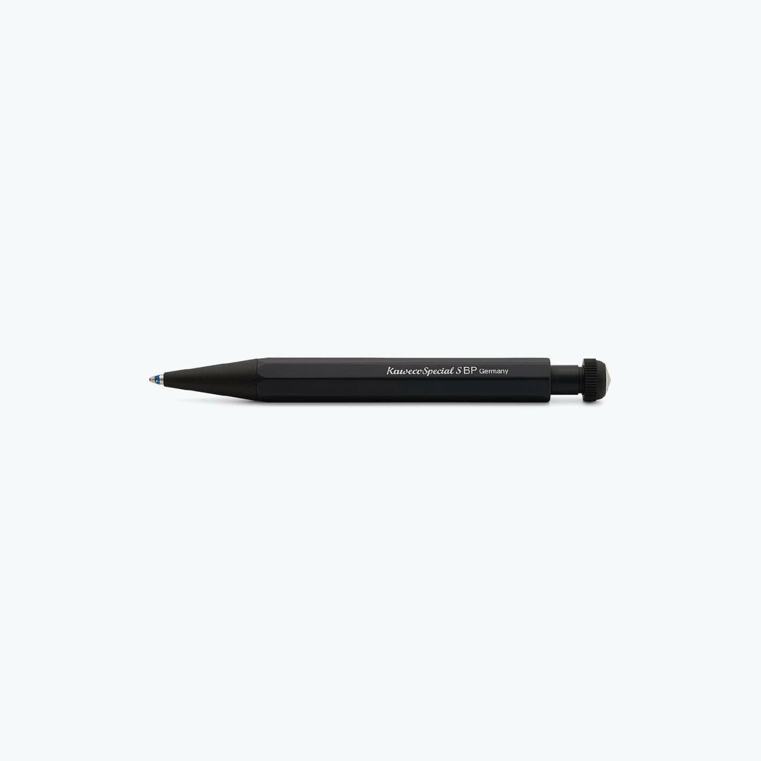 The Kaweco Special ballpoint pen is a sleek addition to the Kaweco line-up. It is made from anodized solid aluminum with a matte black finish and features a push button at the top that extends and retracts the nib.Β This Mini version measures 10.5ch in length, compared to 14.1cm for the full-length version.Β