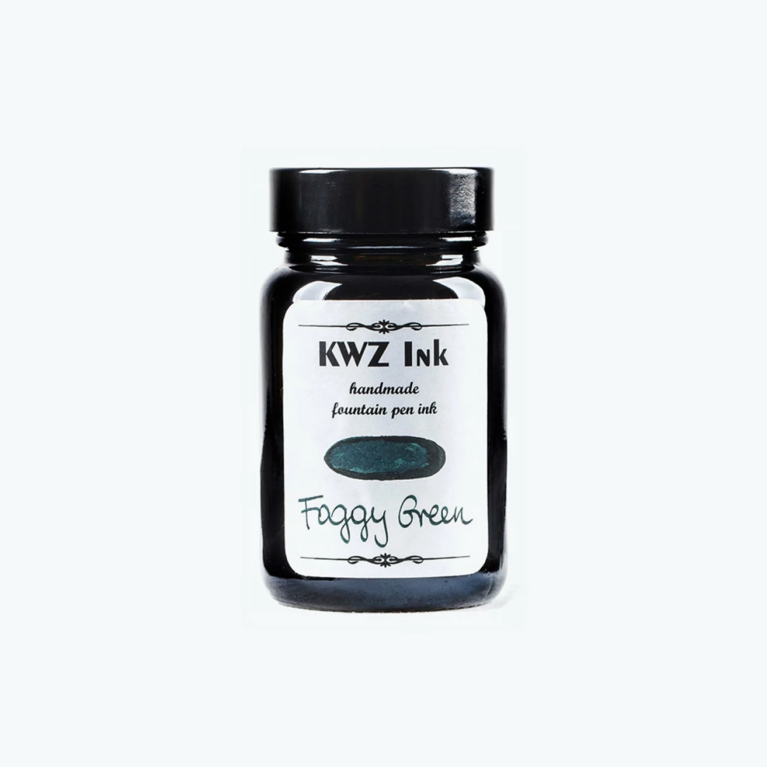 The Foggy GreenΒ handmade bottle contains 60mL,Β while theΒ hand-written label isΒ a defining feature of KWZ.Β They are a remarkable find for those who appreciate colour intensity andΒ wet flowingΒ fountain pen inks forΒ a great writing experience.