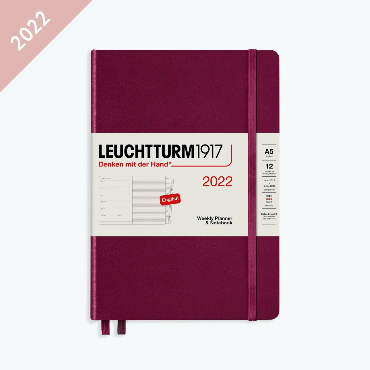 The A5Β port redΒ Leuchtturm1917Β weeklyΒ notebookΒ diary is a simple yet functionalΒ companion for 2022.Β Every page features the calendar week on the left and a ruled notebook page on the right.Β
