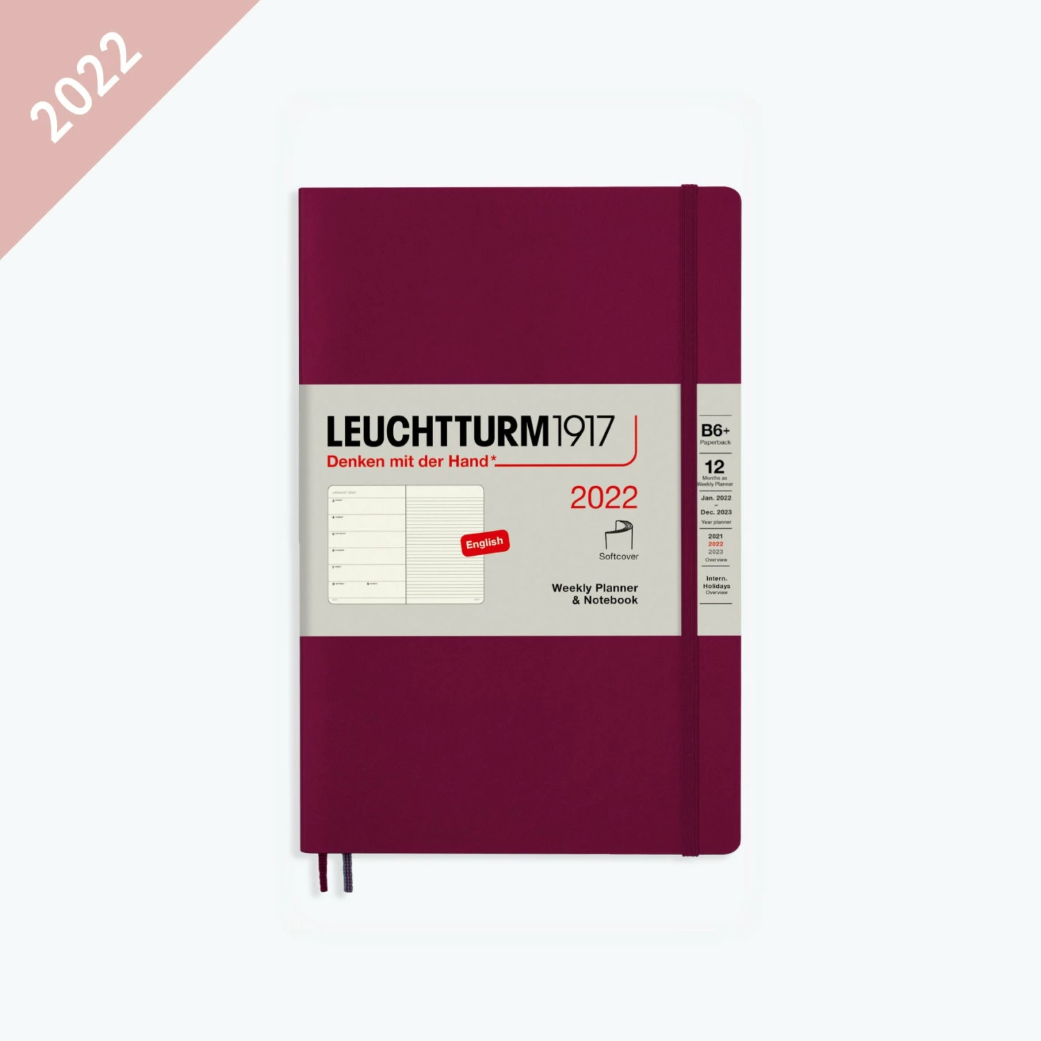The B6+Β port redΒ Leuchtturm1917Β weeklyΒ notebookΒ diary is a simple yet functionalΒ companion for 2022.Β Every page features the calendar week on the left and a ruled notebook page on the right.Β