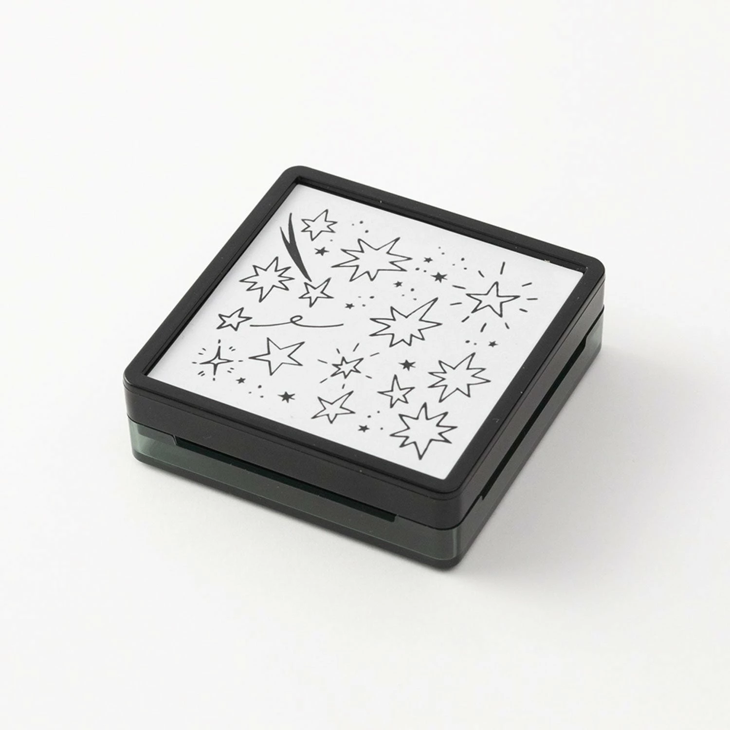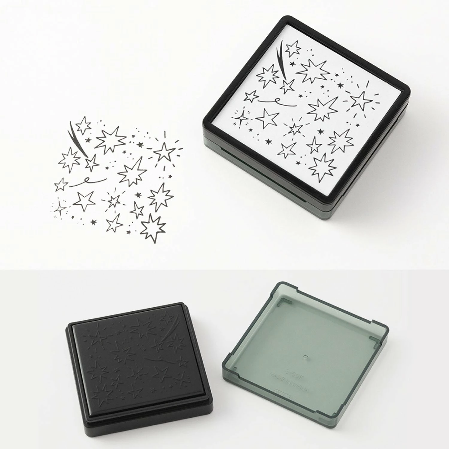 The starsΒ MidoriΒ self-inking stamp is perfect for decorating, organising and keeping track.Β TheΒ design has space to fill in tasks, lists or notes and can be coloured in usingΒ theΒ Midori paintable brush pensΒ asΒ theΒ oil-based, black ink is waterproof.