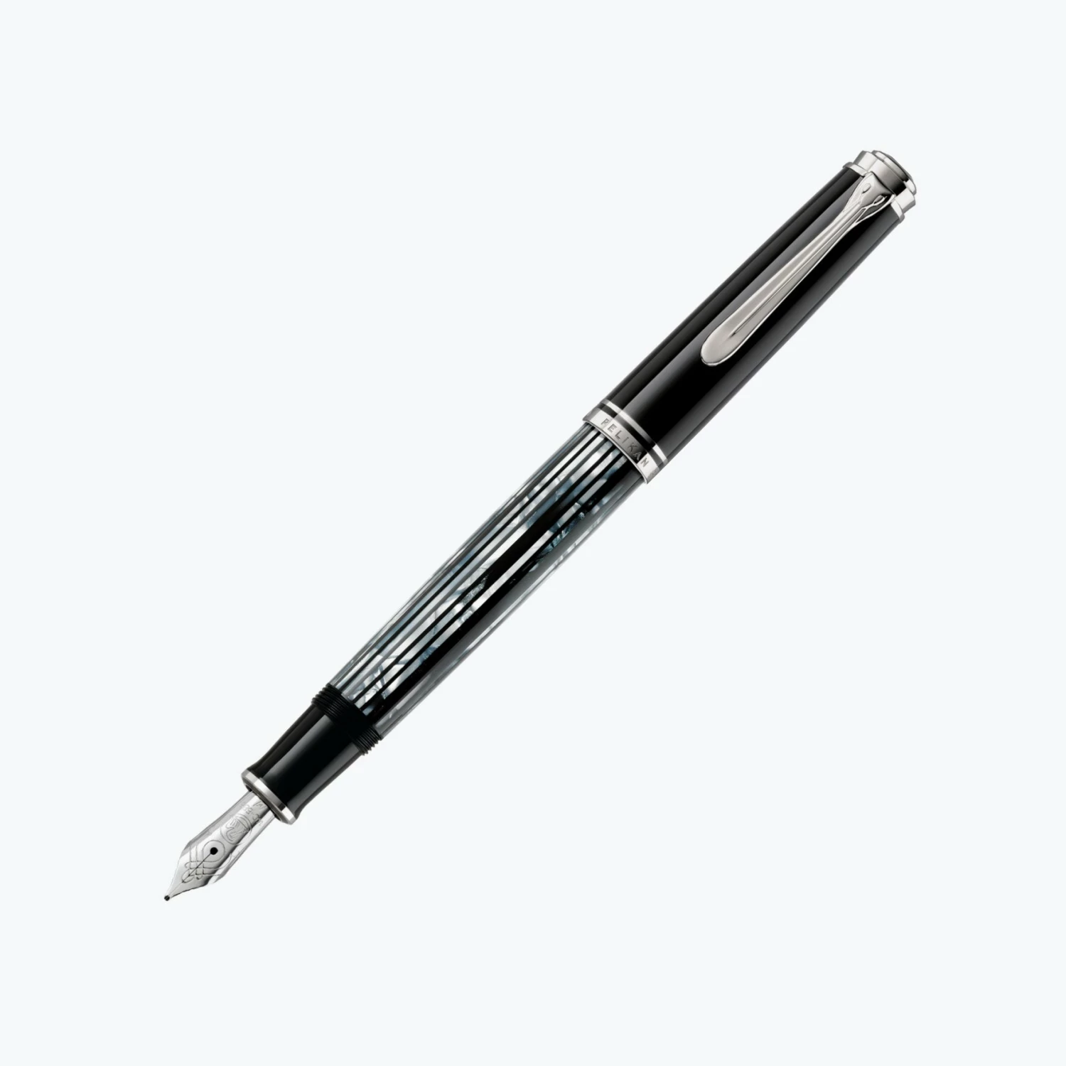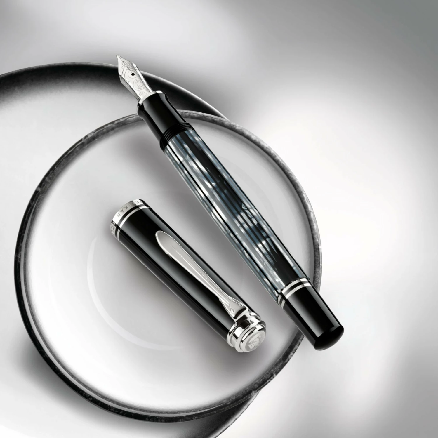 Souverän M605 Tortoiseshell-Black special edition. The barrel captivates with its appealing and individual play of colours with black and white nuances that make each writing instrument truly unique.