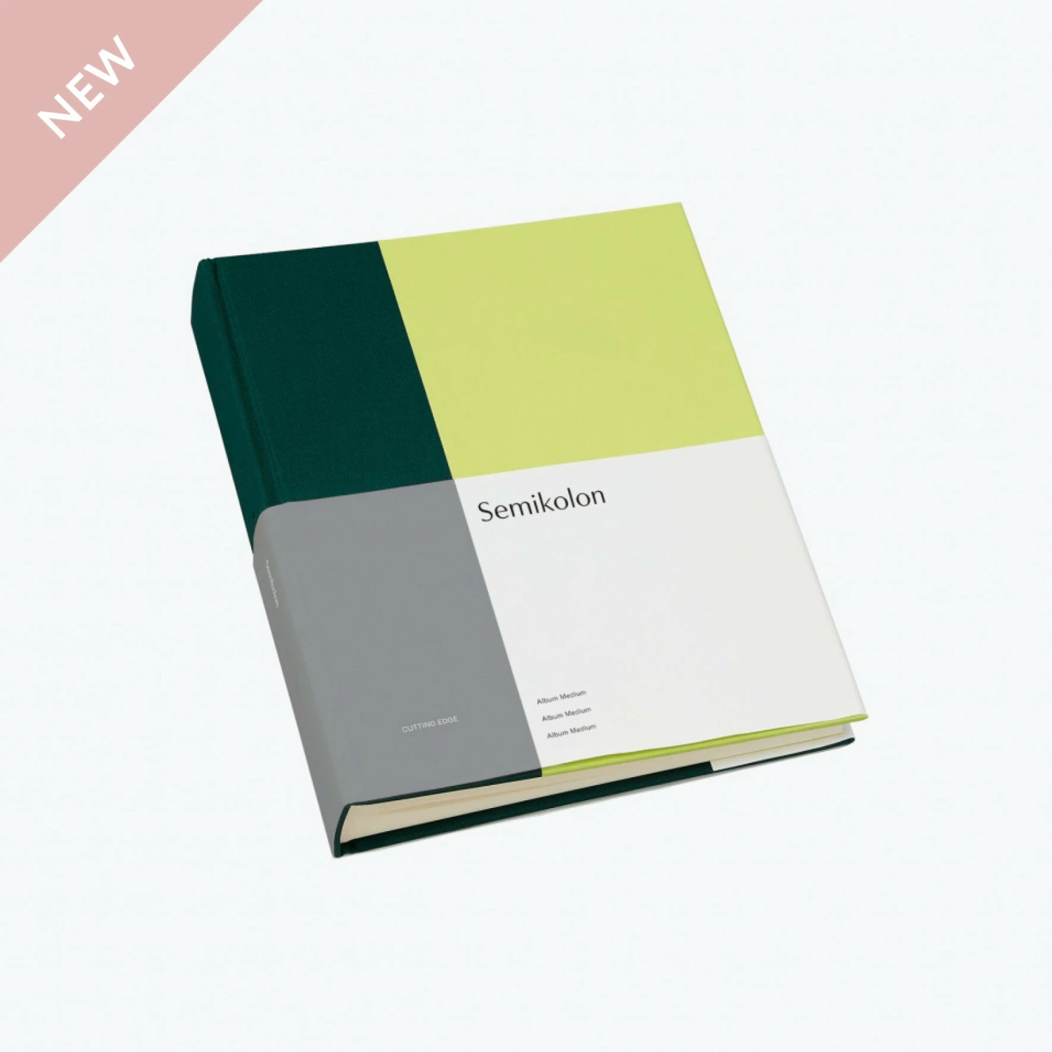 The design of the Cutting Edge series is based on the ‘golden ratio’, a principle that has influenced art and design since ancient times. This perfect ratio works together with a selection of contemporary colour combinations (dark green, lime green and grey) for a modern take on the traditional photo album.