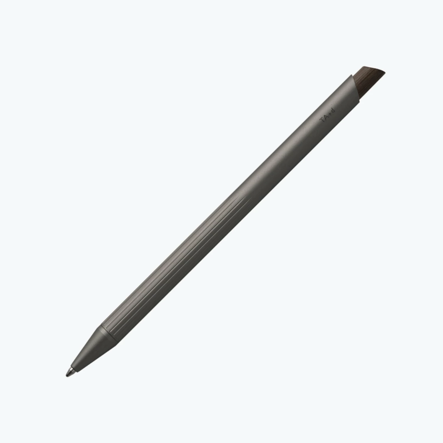 The ballpoint pen is made using unassuming aluminium and environmentally friendly bamboo. It is designed with a silent compression component, a comfortable 23g in weight and smooth writing refills from German Schmidt.