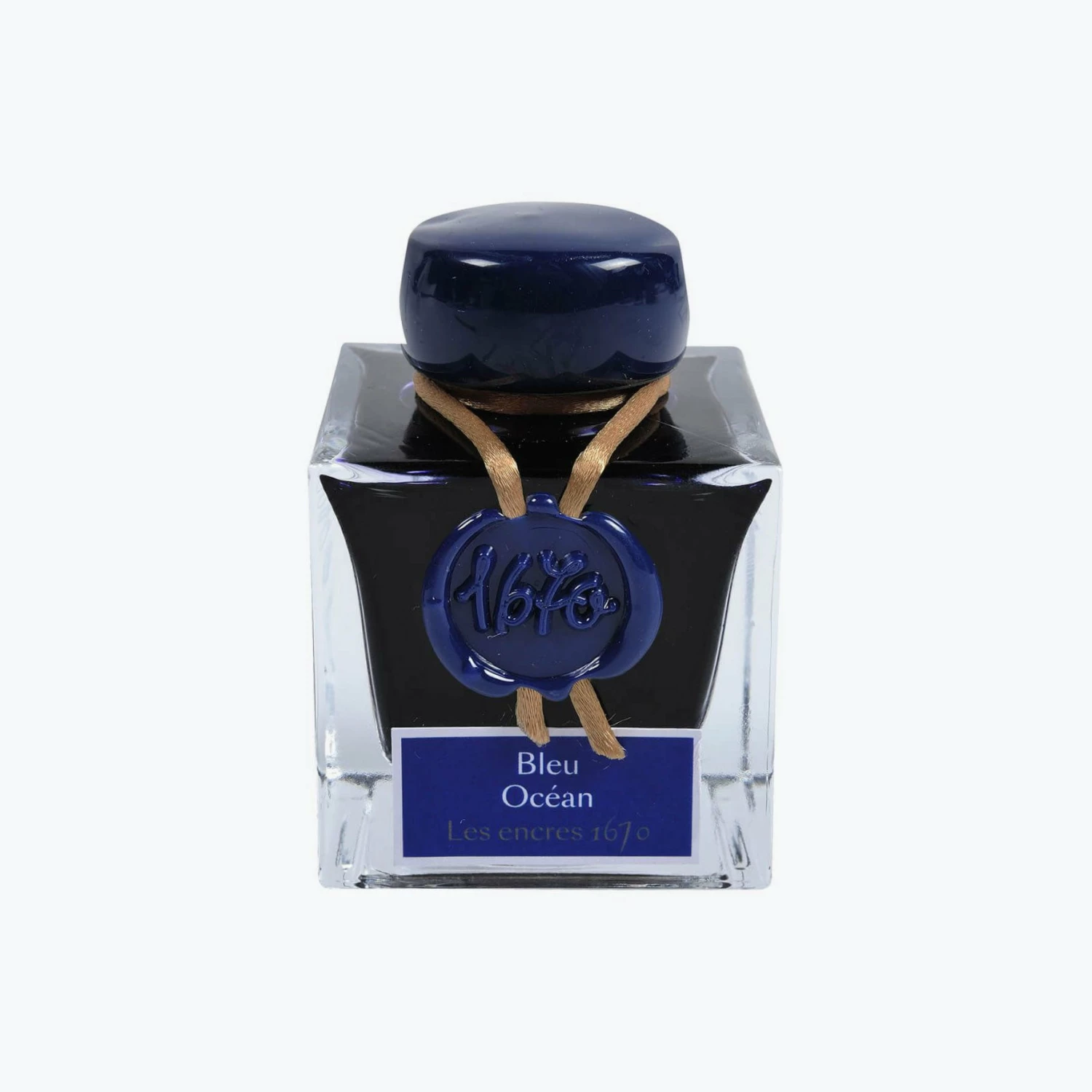 The J. Herbin Blue Ocean is a deep blue ink infused with flecks of gold, which represent the reflection of lightning across the water during J. Herbin’s many sea voyages.