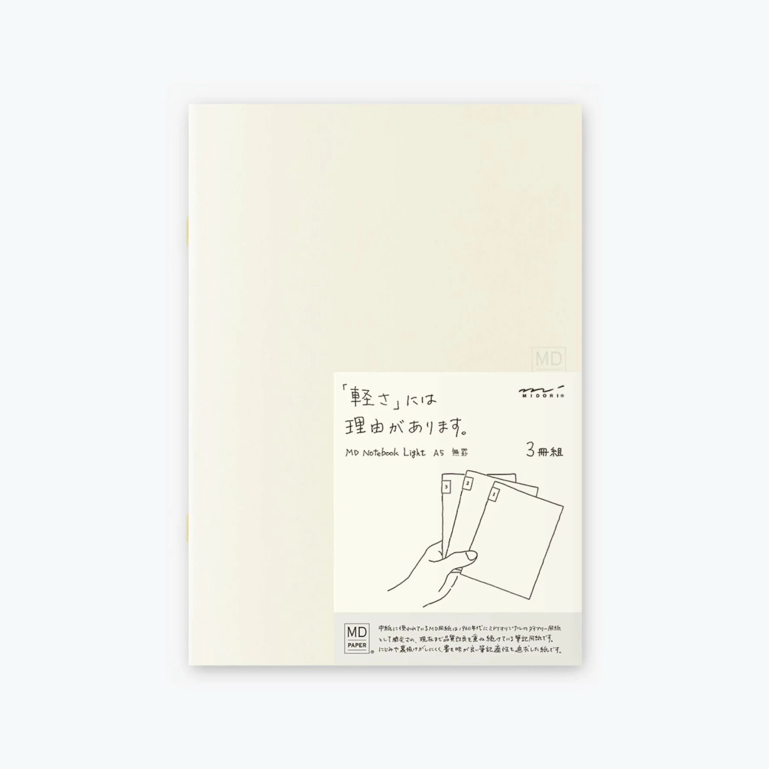 Midoriย Notebook Lightย isย a set of 3 notebooks, each with 48 pages. Whether you use them one at a timeย or at the same timeย forย different purposes, thisย trio is designed to suit any need.